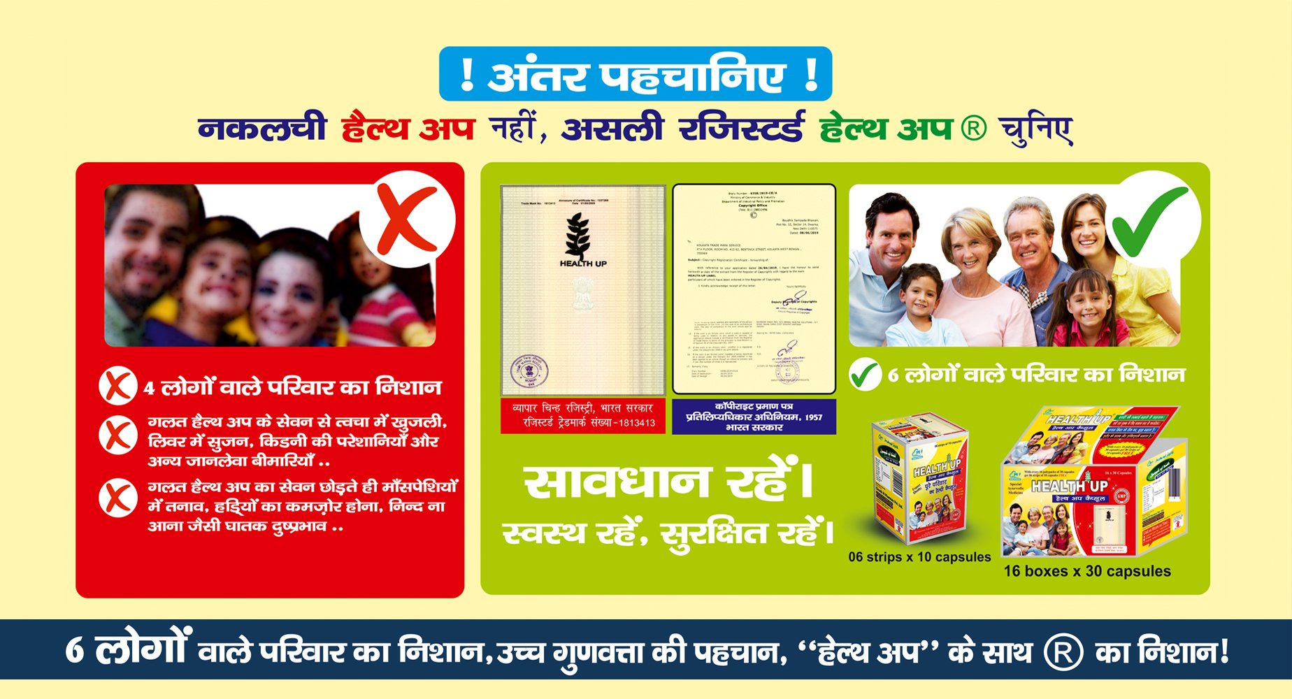 While purchasing Health Up® Capsules, always make sure that you buy Health Up® only with Registered Trademark (® denotes Registered Trademark Product in the Trademark Authority of India).
